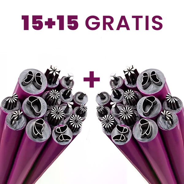 Pakuotėje yra: 1x NailArt antspaudų rinkinys (15 vnt.) + 1x NailArt antspaudų rinkinys (15 vnt.) DOVANŲ